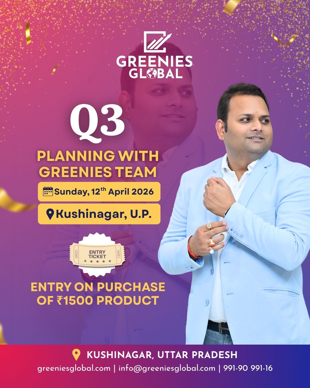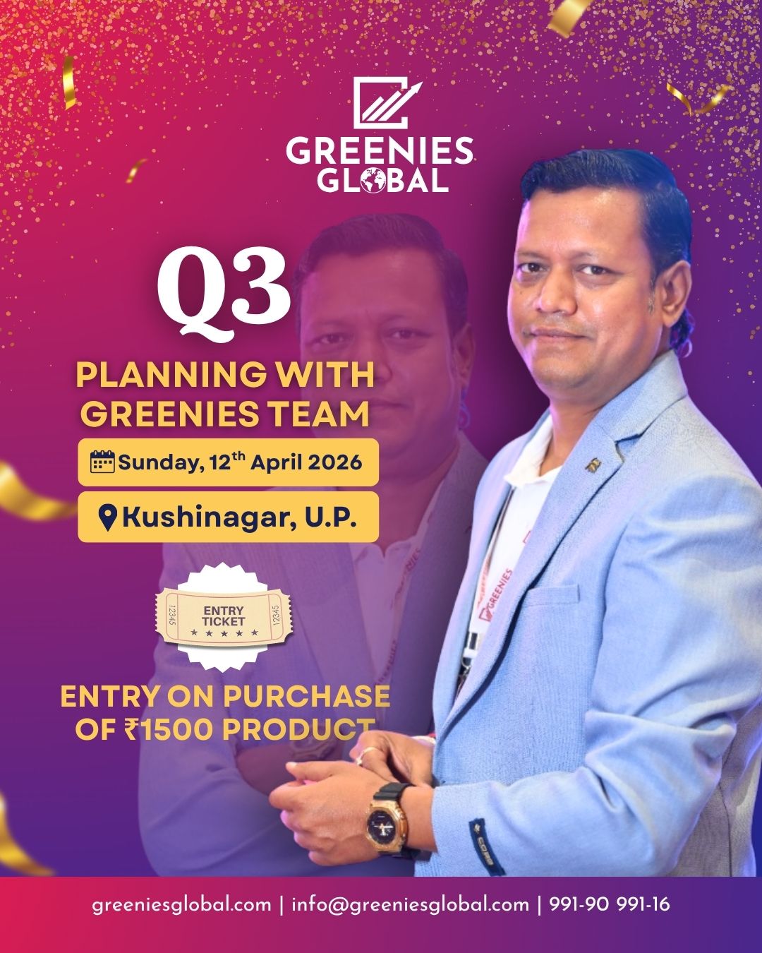 Greenies Global Pvt. Ltd. is more than just a company — it's a movement to build a community of like-minded individuals who believe in the power of herbal living and the strength of collective growth. Rooted in nature and driven by purpose, we promote wellness through high-quality herbal products while empowering people to live healthier, wealthier, and more meaningful lives.